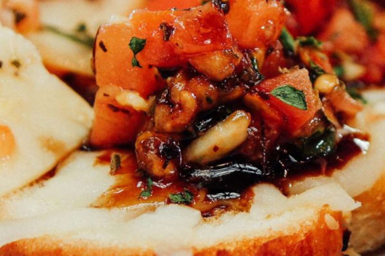 July 19, 2022 kristatav Bruschetta Bites house-made bruschetta with melted mozzarella cheese, balsamic glaze and topped with fresh parmesan & parsley served on toasted sourdough